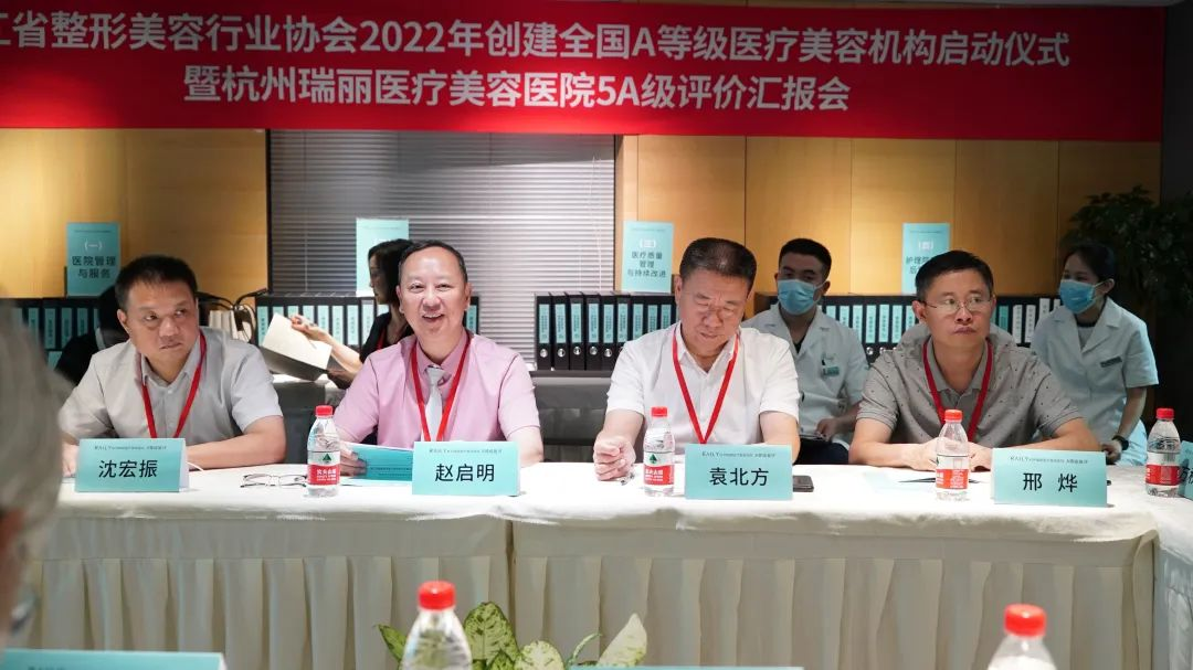 受國家衛(wèi)健委委託,根據(jù)中國整形美容協(xié)會(huì)在全國範(fàn)圍部署醫(yī)療美容機(jī)構(gòu)評(píng)價(jià)工作的計(jì)畫要求,2022年浙江省醫(yī)療美容機(jī)構(gòu)A等級(jí)評(píng)價(jià)工作在全省範(fàn)圍開展。8月27日下午,浙江省醫(yī)療美容機(jī)構(gòu)A等級(jí)評(píng)價(jià)工作省級(jí)初評(píng)啟動(dòng)會(huì)在杭州瑞麗醫(yī)療美容醫(yī)院舉辦。浙江省整形美容行業(yè)協(xié)會(huì)會(huì)長趙啟明,浙江省衛(wèi)健委綜合監(jiān)督局四級(jí)調(diào)研員沈宏振、杭州市衛(wèi)健委醫(yī)政醫(yī)管處處長袁北方、杭州市衛(wèi)健綜合行政執(zhí)法隊(duì)醫(yī)療科科長邢燁;浙江省醫(yī)療美容機(jī)構(gòu)評(píng)價(jià)專家組:杭州市上城區(qū)衛(wèi)健局副局長方秋萍、浙江大學(xué)醫(yī)學(xué)院附屬邵逸夫醫(yī)院整形外科李華主任、溫州醫(yī)科大學(xué)附屬第一醫(yī)院整形外科鄭君達(dá)主任、杭州市感染質(zhì)控中心專家楊梅;浙江省整形美容行業(yè)協(xié)會(huì)高級(jí)顧問、全國醫(yī)美資深專家馬奇教授,浙江省整形美容行業(yè)協(xié)會(huì)秘書長李自明、副秘書長劉英;瑞麗醫(yī)美集團(tuán)副總裁戎浩天、瑞麗醫(yī)美集團(tuán)總院長宋建良、杭州瑞麗醫(yī)療美容醫(yī)院總經(jīng)理徐建清、杭州瑞麗醫(yī)療美容醫(yī)院醫(yī)療院長閔密克等參會(huì)。